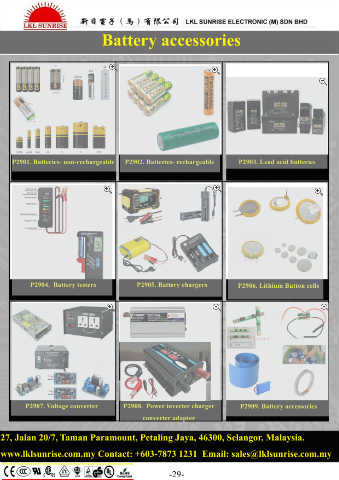 P2904. Battery testers P2905. Battery chargers P2906. Lithium Button cells