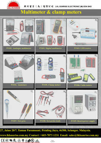 P3101. Analogue multimeter            P3102. Digital multimeter                P3103. LED testers
