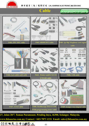 P404. Lan cable cat5 cat6 P405. Power cord C13 C14 P406. USB cable